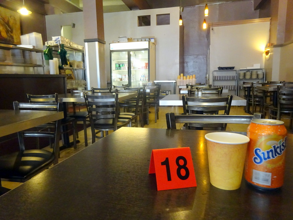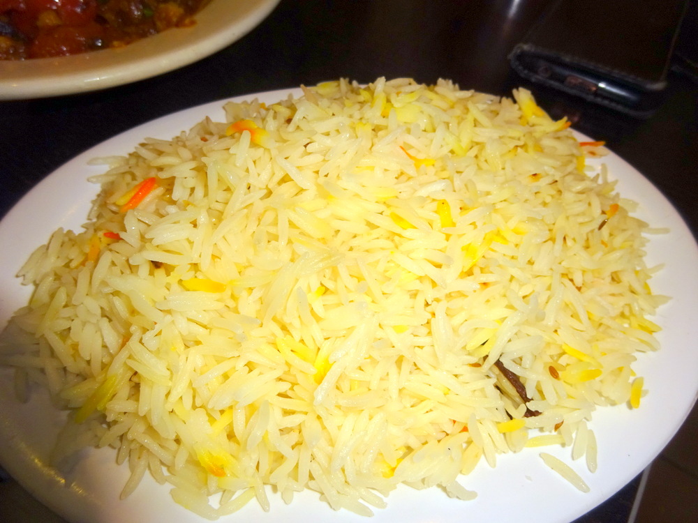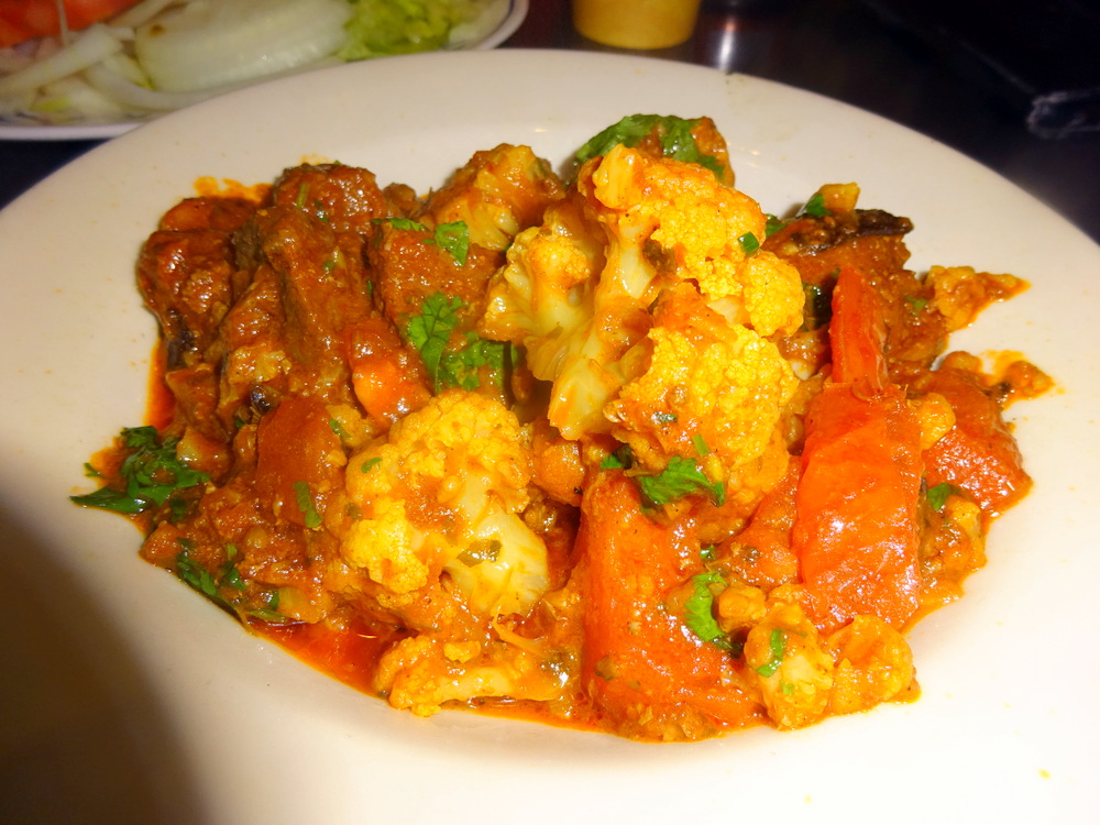 Most of the venues I have seen are in the Curry Cafe category, there’s nothing posh going on here, the prices are therefore commensurate. I entered Chutney @11.30, three Diners were already present, a handful more would arrive during my stay. The Waiter was mid-room when he greeted me, I was able to choose my own table. He brought the Menu but said I would have to order at the counter. I asked about the Daily Specials, all were available, including Karahi Gosht, but none were priced. I decided to play safe: Lamb Seekh Kebab ($2.99), Gobi Gosht ($9.49) and Rice Pullao ($2.49) would be accompanied by a Fanta equivalent. All soda’s (sic) $1.25.
