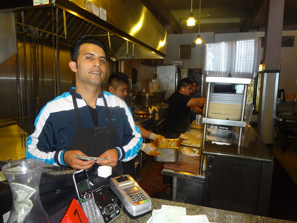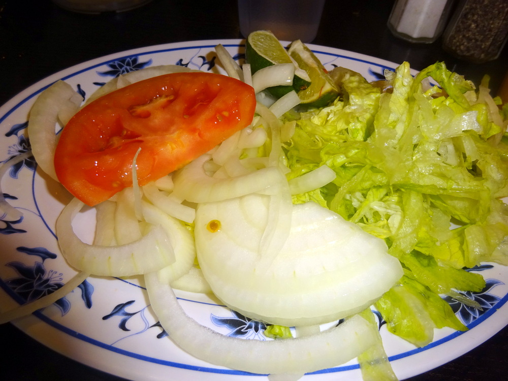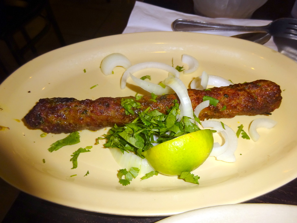 A welcome pitcher of Cold Tap Water was brought, just as well. The sweat erupted as I took my seat, it’s warm out there today. Hector has found summer at last. A Salad with abundant sliced Onions and wedges of Lime was presented also. I assumed this was to accompany the Seekh Kebab, I noted Raita was an extra Dollar.