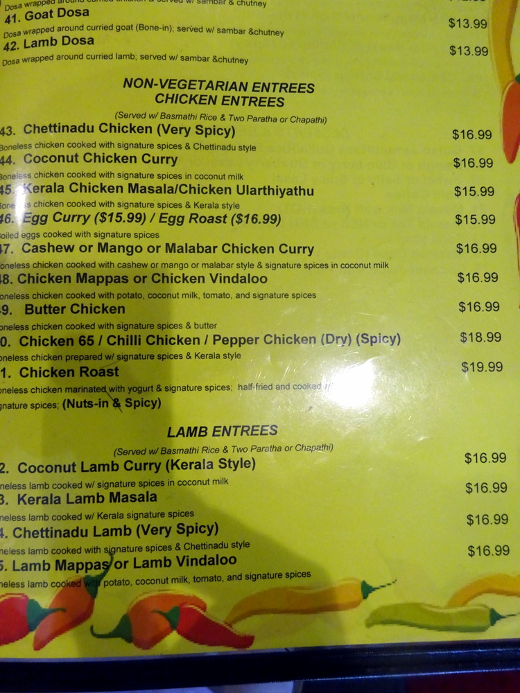 The day began with Curryspondent Doug questioning if Storm Hector, caused by an excess of so called – Chicken Curry – here in USA, had taken its toll: days here without Curry and my enthusiasm waning. There was a brief – Wow! – at India Grill (Portland OR), but yesterday’s visit to Qazis here in Seattle made me question what I was doing. Suppose there are no decent Curry Houses? I decided to stick to the plan and visit Chili’s South Indian Cuisine (4220 University Way NE, Seattle, WA 98105 USA). Kerala Cuisine is not my favoured but I do love Chettinad. Indian Mango (München) have set the Chettinad Standard, but I believe they have altered what they now serve, to me at least, to reduce the former abundant Masala. The Smoked Chilli Flavour remains Universal.