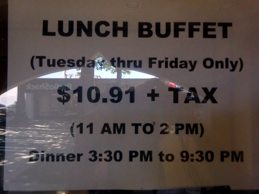 One of the two Waitresses offered me Chai, I declined, I don’t drink Tea with Milk and never outside Scotland, the Water. The other Waitress offered me Chai, a new Chap who had appeared on duty did so also. Can I have more Water please? A young Girl appeared at the door beside me, she was here to wash up, had she been summoned due to the number of customers now present and sometimes queuing? I did well to keep my table and not be moved to the window. The Couple who were given the last table for two in front of me studied the Menu, accepted the Chai, then left. Bad form. Were they expecting Buffet ($10.91 plus Tax)? Not available at weekends.