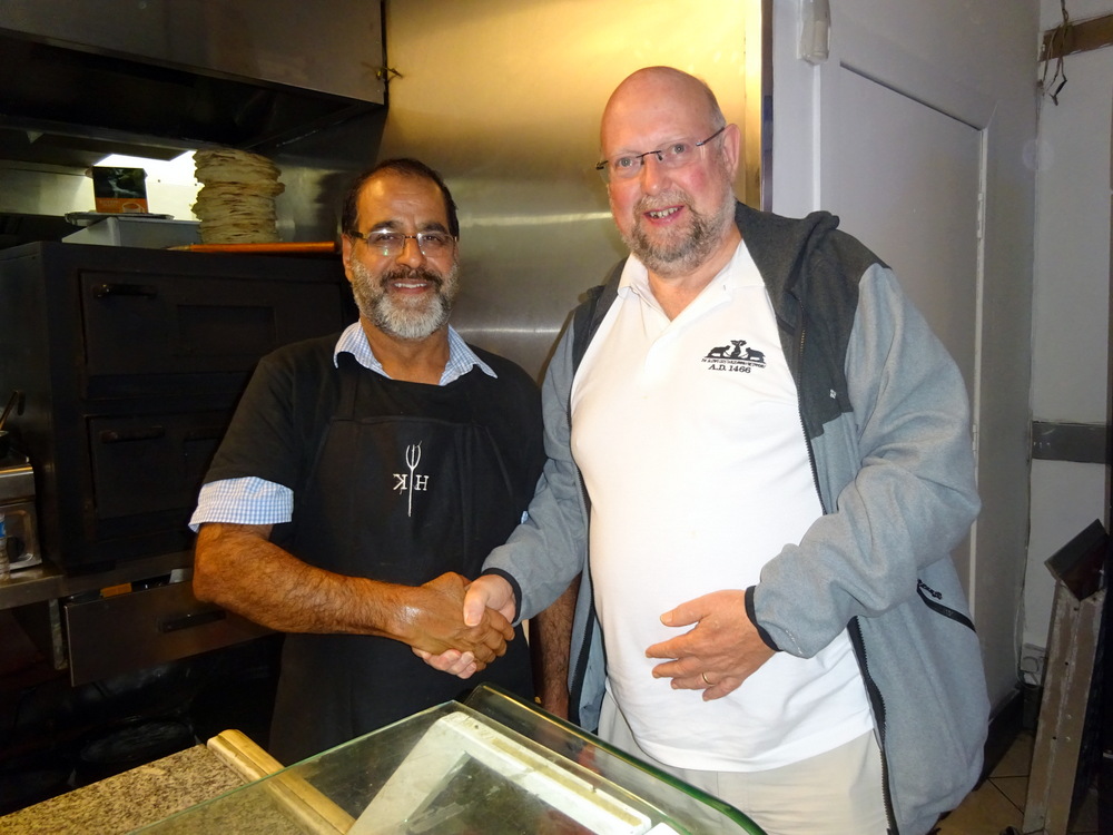The Modest Salad and Raita were presented, I was about to tuck into these when the Chap sitting on my left addressed me. Meet Shakeel, another left handed eater. He asked after the Blog and observed that Hector has lost weight. Two statements that were guaranteed to endear. We have eaten here together before, evidently.