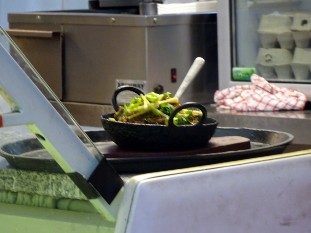 The Lamb Karahi sat at the counter for a few moments, cue a photo. Qaiser brought the Karahi and the Chapatti. Everything was hotter than everything else. Wonderful.