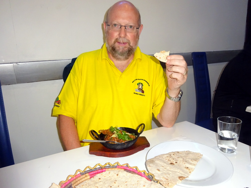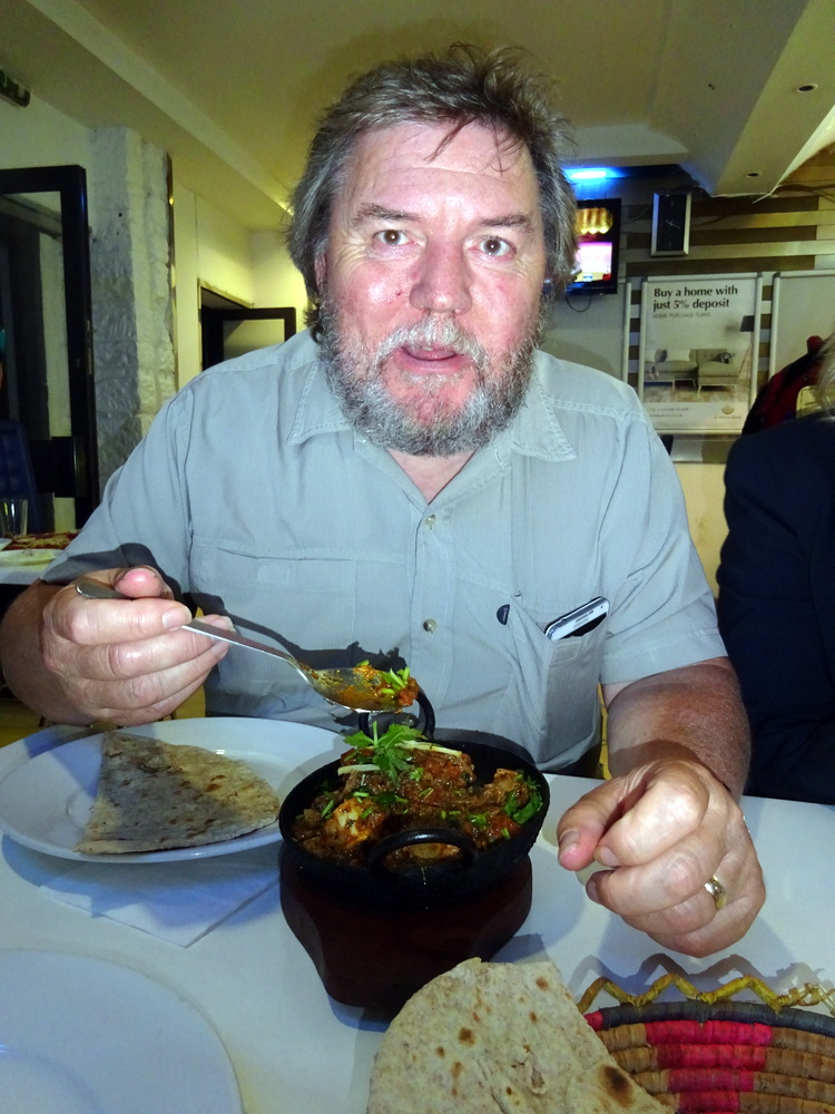 This Karahi Gosht was as – Hot – as – Hot – can be. The Lamb Chops and Sucky Bones were handled tentatively. Who cut the Chapattis in half? I appeared to have a larger bone count than Clive, the luck of the draw or a subtle attempt to make me order the – half kilo? Hector is long overdue another half kilo at Karahi Palace.