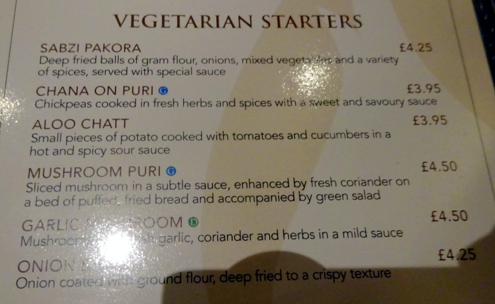 Back in the Restaurant I showed the Waitress and the Head Waiter the Calling Card. We then discussed the regional variations in Curry throughout the UK. India was mentioned and the extent to which the UK has possibly influenced what appears on the Menu across the subcontinent.