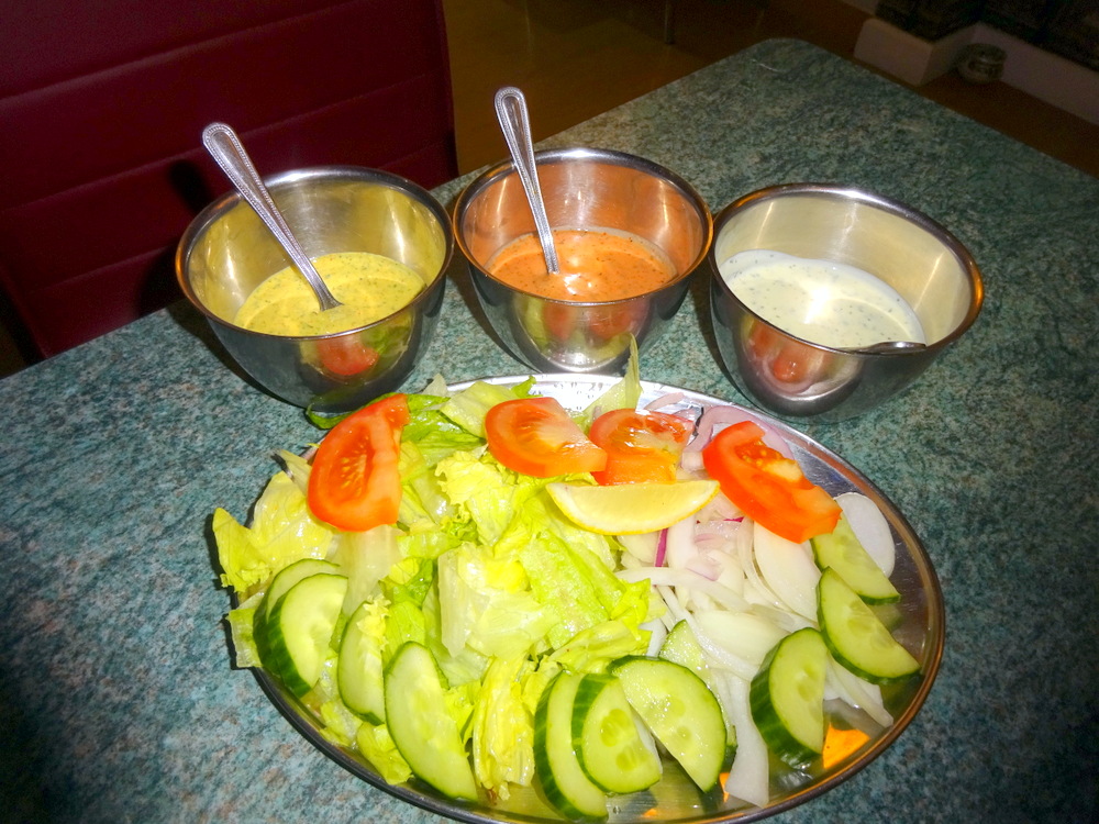 Hot plates were presented along with an impressive Salad and Dips. Hot plates for a Salad? The Curry arrived moments later.