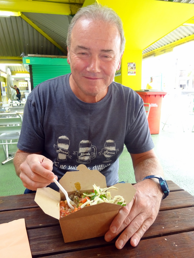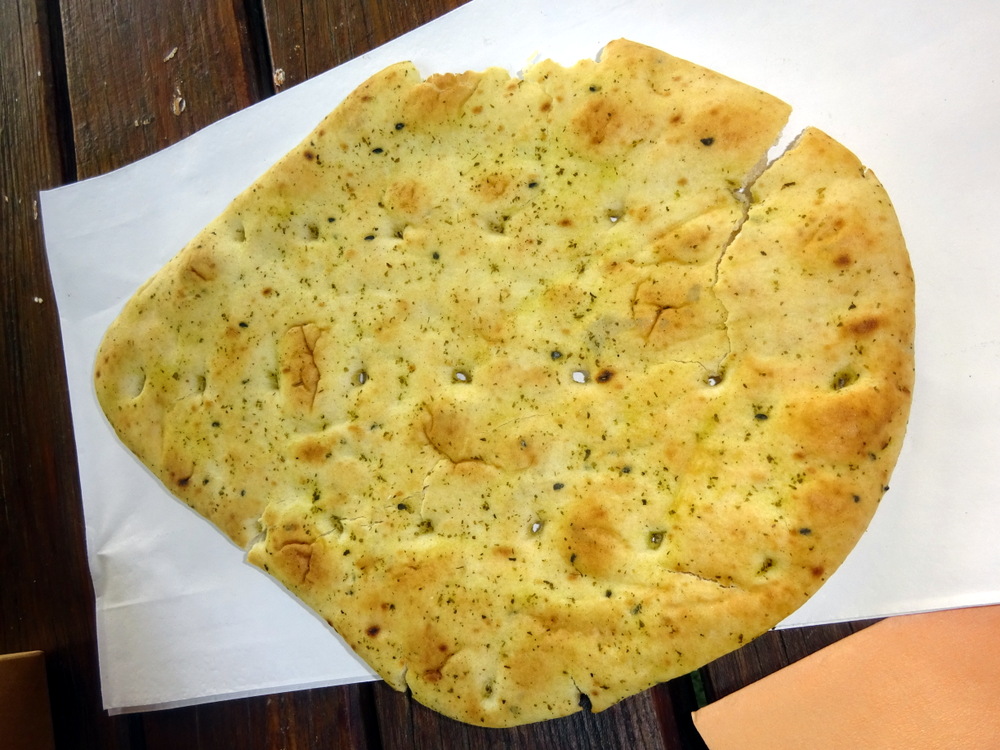 Steve, facing the market stall, was summoned back up. He returned with a Supermarket-quality Naan. It had a piece missing and was going to be thrown out. Thanks, Nick.