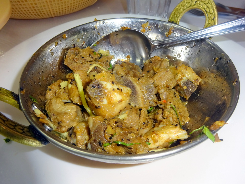 One of the Waiters observed the debris, he must have thought this was the end of our meal. The – can I get you anything else – had to be dismissed. Our Waitress was doing a very fine job and had granted us a ten minute respite between courses. Only on our say did she go back to the counter to organise the delivery of the Namkeen Karahi.