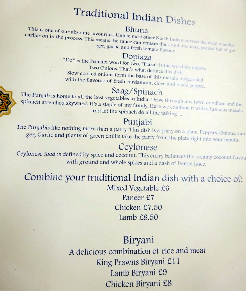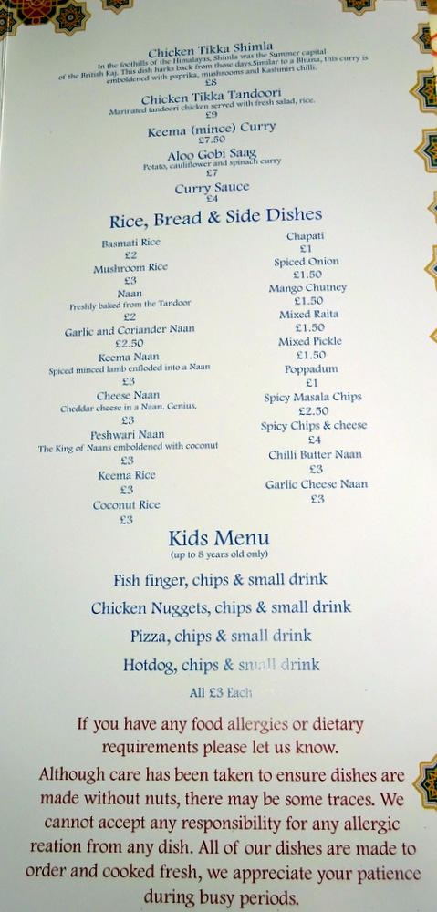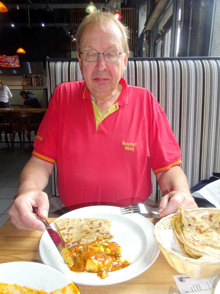 The Waiter came to take the Order, he is from Bombay, an opperchancity for Hector to say he has been to India. Two Soft Drinks (£2.50) were ordered in addition to the above. Our Curry selections and the Parathas were not on the menu. For the record, Bier and wine were available.