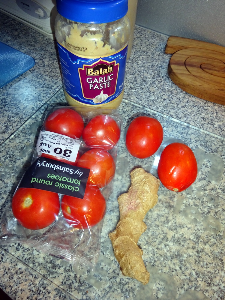 A Chef told me how to make a Punjabi Tomato-based Masala a couple of years ago, I was virtually sworn to secrecy. However, in the last ten days the method has gone into the public domain, so here we go. Blending turns Fresh Tomatoes – White – as I discovered some time ago. Finely Chopped, with a Tin of Chopped Tomatoes in reserve was the plan for this evening.