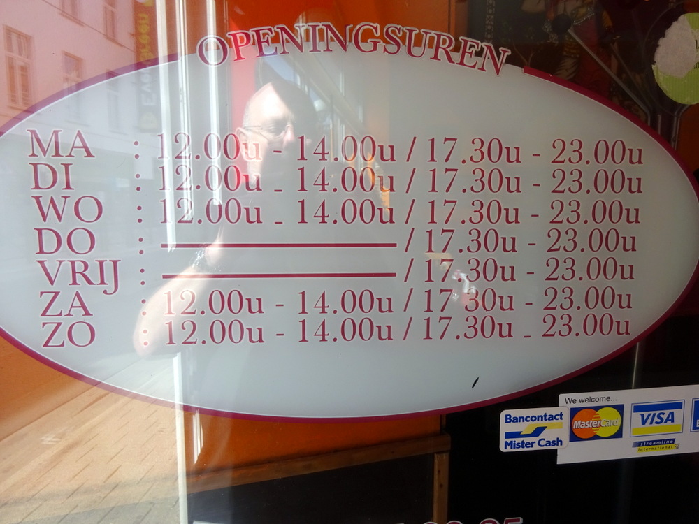 Punjab Tandoori (Sleepstraat 67, 9000 Gent, Belgium) is located on the Tram route to the north of Korenmarkt, it is a ten minute walk from there, follow the Tram lines. Arriving at 12.30, Punjab Tandoori was open as it is every Lunchtime, Thursday and Friday excepted. It was Chef who eventually emerged from the kitchen and greeted me after I did a – cough – where was the Waiter?