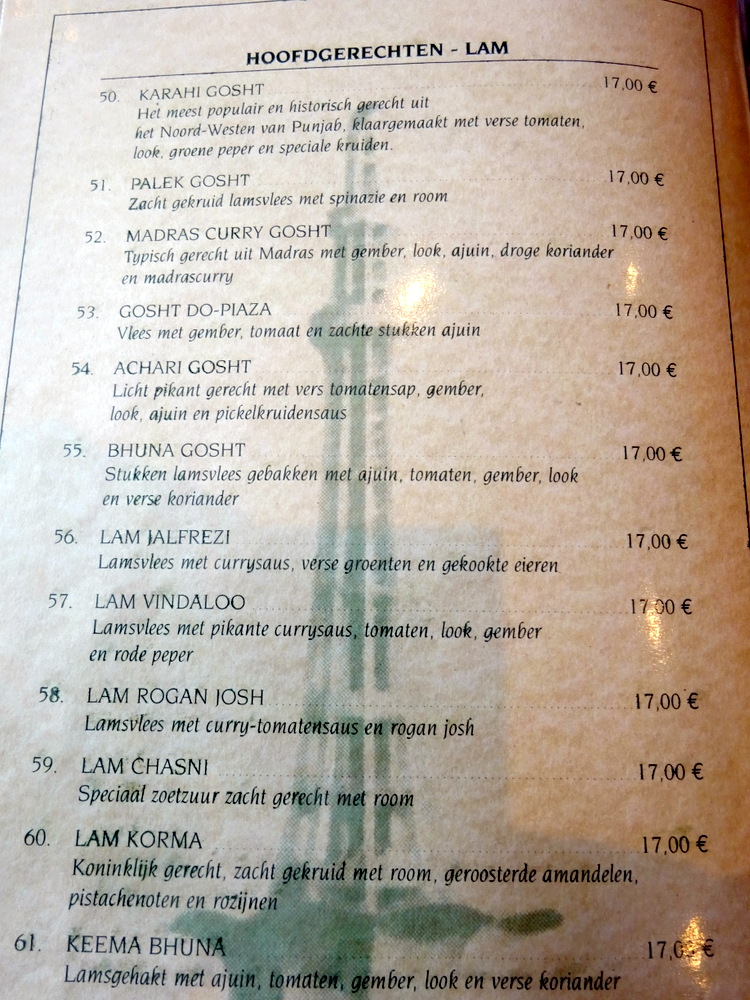 Hector has done well this week in Belgium. Having almost written off Curry in this land over the years, better IT has led to the discovery of venues which might actually sell Genuine Curry rather than the despicable blandness of Euro-Curry. That Hector is able to narrow down the list to locate Punjabi venues is the key to success.