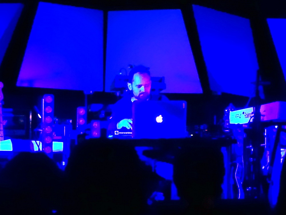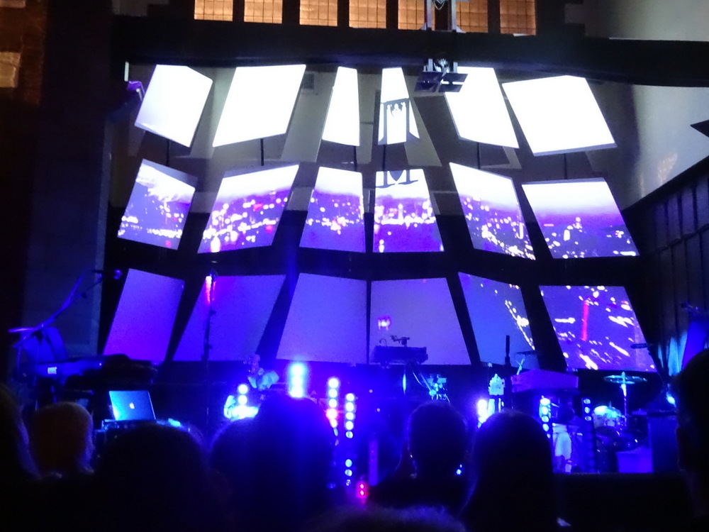 This was more like the Electronic Musik I love, big Sounds swathing, more Germanic than that which preceded. Longer Pieces, the lights on stage and the screens created impressive visual effects. Marg would remark later that she liked the projection of his hands over the the background movie. I saw no camera, this was pre-filmed. Yes, this was enjoyable.