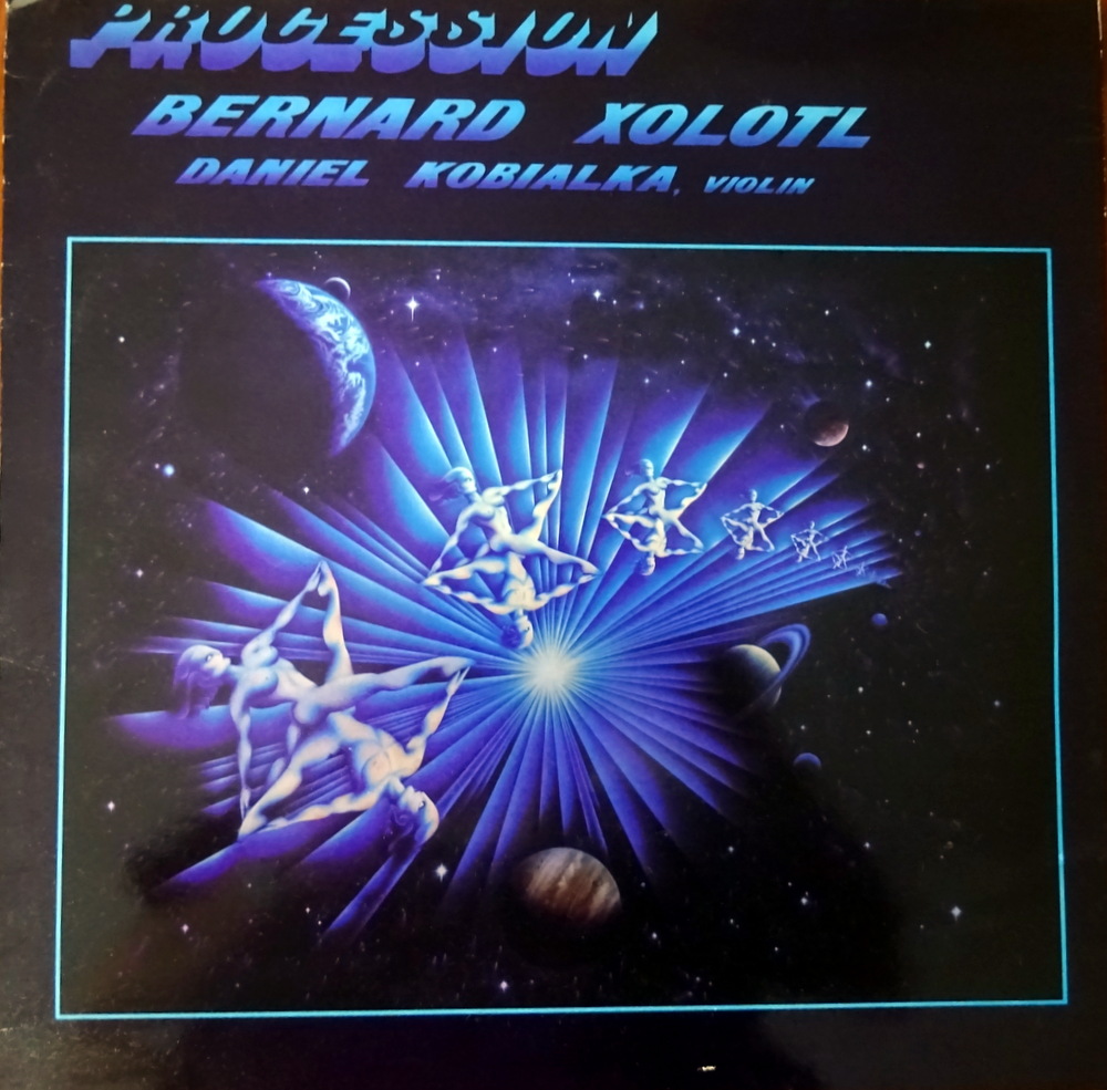 Mogwai and Irmin Schmidt, from somewhere in the depths of memory came the name – Bernard Xolotl. I have his album – Procession – on vinyl only and so have not heard it in yonks. A Synth Player, on this album he is accompanied by Daniel Kobialka on Violin. This is an excellent album, and very similar to what I was hearing this evening.