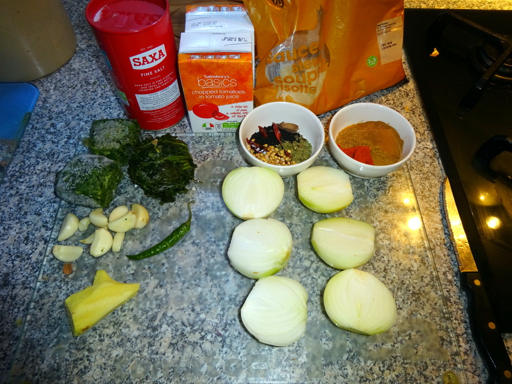 Having watched some of the videos that pop up on the Huawei, I decided to try a radically different approach to making the base Masala. Restaurants normally follow the standard approach as outlined in – Aloo Chicken, A Beginner’s Curry – then blend to create the Mainstream Masala that is universally served. However, blending the Onions and Tomatoes before cooking? I had to try this.