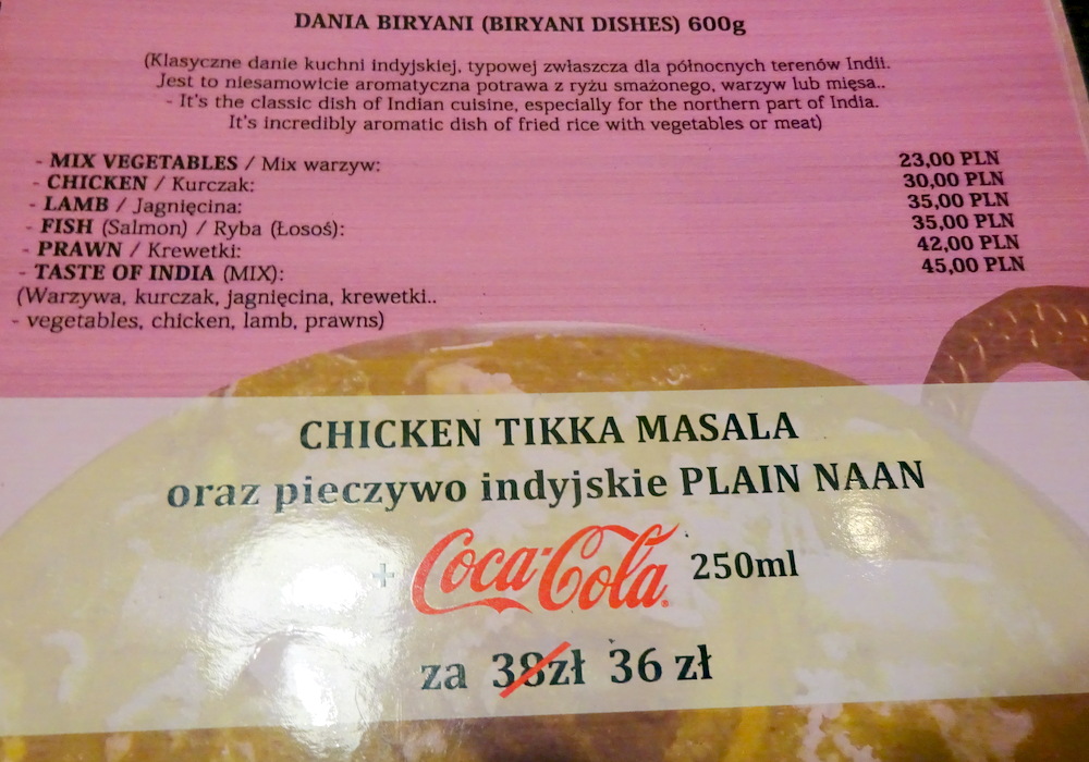 I do not know what others have ordered at Taste of India which made them praise their Curry so highly. I have been to ten Curry Houses in Kraków, this was nowhere near deserving the accolade – Best Curry – as experienced by the Hector. Having been to India, I know somehting about the actual – Taste of India – this was not it.