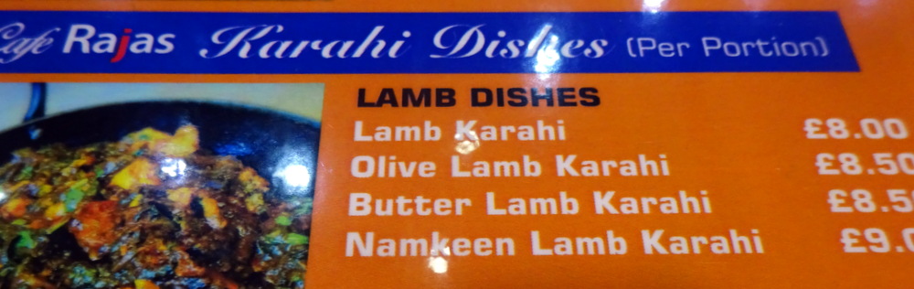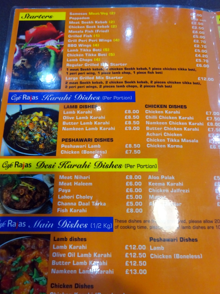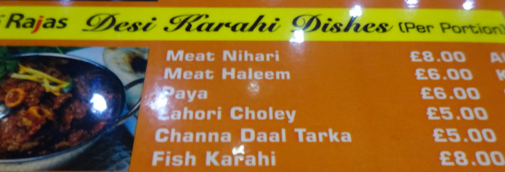 I decided to take the walk up Great Horton Rd. passing Shimlas which looked too formal as did Anams. MyLahore Deli I have been to already. Eventually I reached Rajas (258 Great Horton Road, Bradford, BD7 1PU), next door looked much more interesting: Cafe Rajas Karahi Lounge (260 Great Horton Road, Bradford, BD7 1PU).
