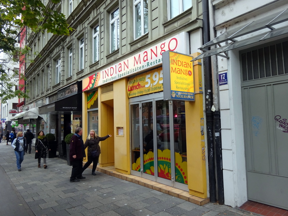 The rendezvous with Lord Clive and Lady Maggie of Crawley was noon at Indian Mango (Zweibrückenstraße 15, 80331, München Deutschland). Somehow we met on the stairs down to the S Bahn at Hauptbahnhof. They arrived in München early this morning, we’ll see how long Maggie lasts today.