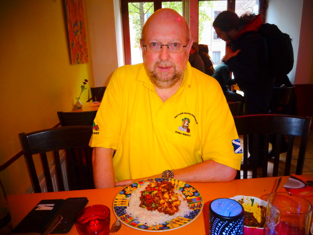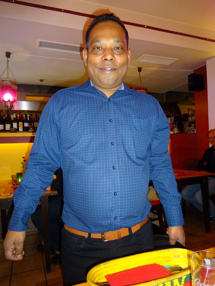 Herr Battra greeted us with his customary handshake as we entered. Clive and Maggie were also both up for the magnificent Fisch Chettinad (€13.90), though Maggie would ask for hers to be – mild.