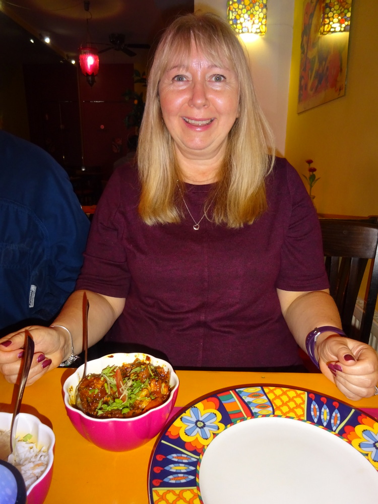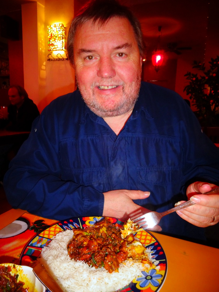 Maggie was well ahead of us, Clive admitted that Maggie could not have have handled what we were eating. Hector produced sweat, this Curry was testing.