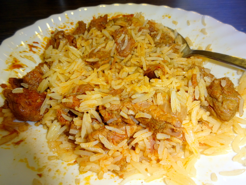 So what do we have here? A mass of Meat, I reached twenty and stopped counting. I use the term – Shorva – possibly too often to describe a Masala that is Thinner then I seek and usually Excessive. This was a true Shorva. I scraped some of the Meat aside to let the liquid collect on the plate, this Shorva was – watery. Very poor.