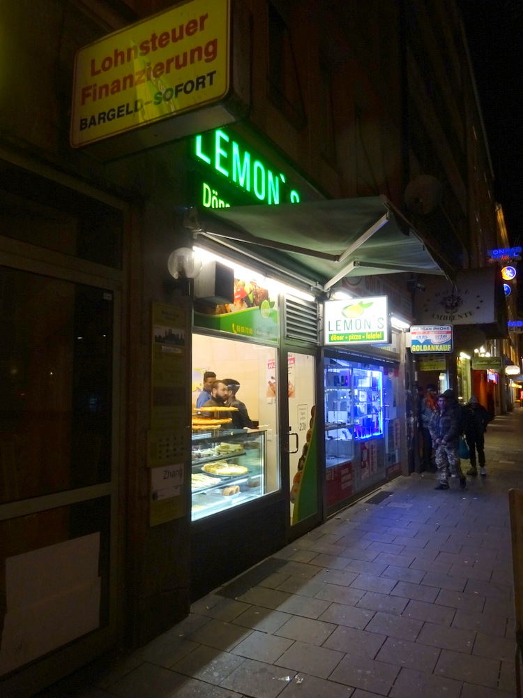 Timings this evening became a bit wobbly. There was little chance of getting back to Indian Mango for Lamm Chettinad, instead, a Kebap was calling. The Kebap shop on the corner opposite Hotel Royal on Schillerstrasse (same street as Cafe Schiller, aka – The Sports Bar) has been frequented a few times over the years, it looked as if they were closing as Hector arrived @01.00. Instead, nearby Lemon’s Restaurant (Schillerstrasse 14, 80336 München, Deutschland) was showing signs of activity.
