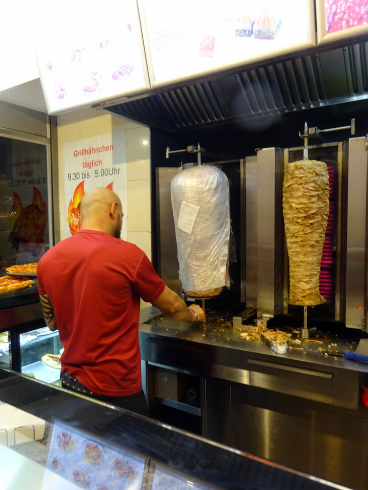 Lemon’s Restaurant sits eight at three tables with some stools along the wall where a shelf acts as a further table. A Restaurant, OK, it’s a Kebap Shop which just happened to have Curry. It’s open twenty four hours a day, so Hector could have Curry in München at any time, theoretically.