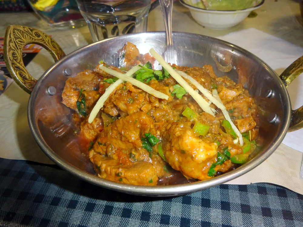 Topped with substantial Ginger Strips and Sliced Green Chillies, this Curry looked menacing. The Masala was decidedly Dark and had the Thickness Hector dreams of. This had serious Lamb on-the-bone. Once again all was set for something wonderful, would this deliver?