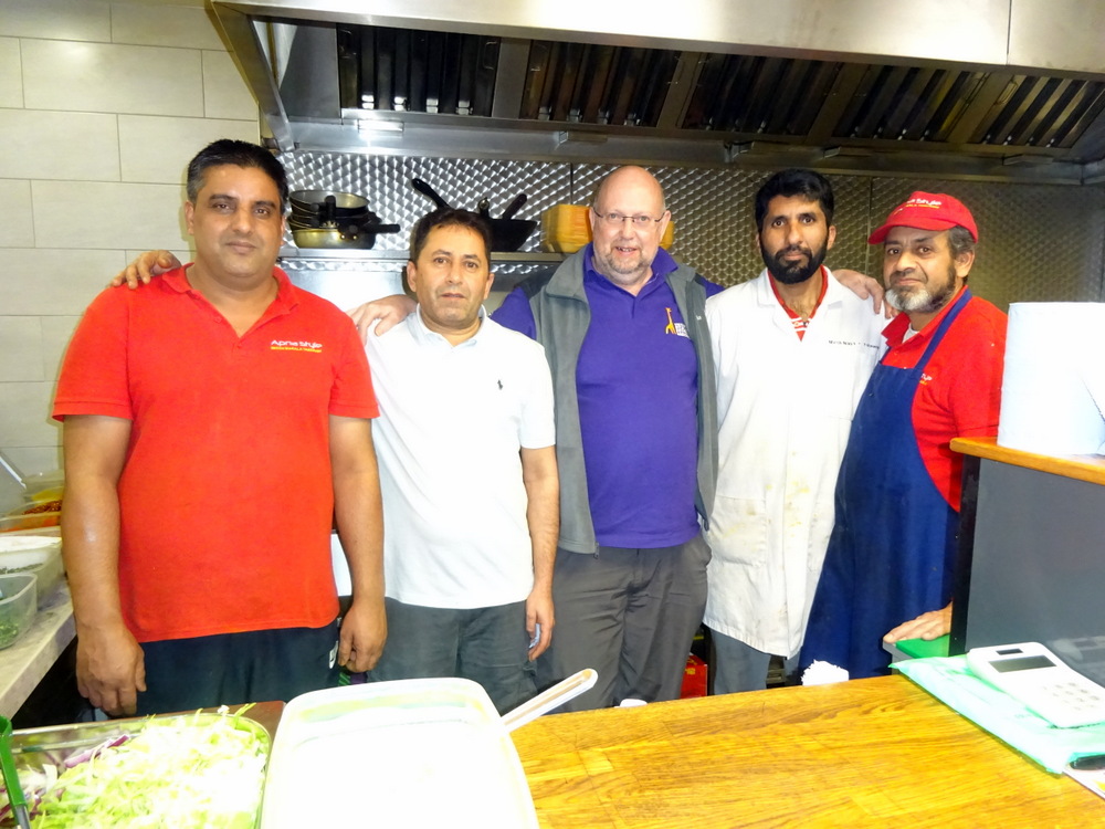 There are times when I do applaud whilst leaving a Curry House. I asked if I could get a photo of the Staff together. Hector was invited to be part of it, and so I found myself on the other side of the counter. Hector is well and truly known at Apna Style.