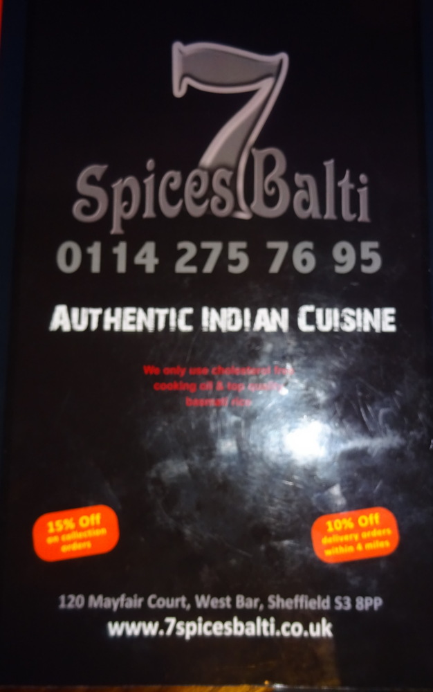 There was always going to be a Sheffield Curry after a day spent at the Shakespeare Ale Festival which could become another – must visit – in the calendar. Hector hoped that Howard would accompany on a return trip to Apna Style (27 Wolseley Road, Sheffield, England S8 0ZT) which has been visited twice in recent weeks. Instead Mags was the company and 7 Spices Balti (Mayfair Court, 120 Gibraltar St., Sheffield S3 8PP England) was the chosen venue. It is virtually next door to Shakespeare.