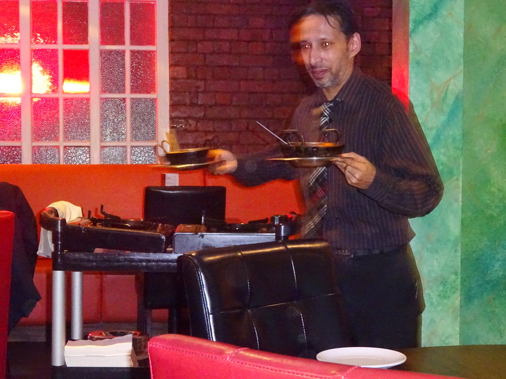 It was Ali who brought the plates which he warned us were – Hot. They were! The trolley was wheeled over and the final stir given to our Dishes, the food at 7 Spices Balti is served – Piping Hot – as it should be.