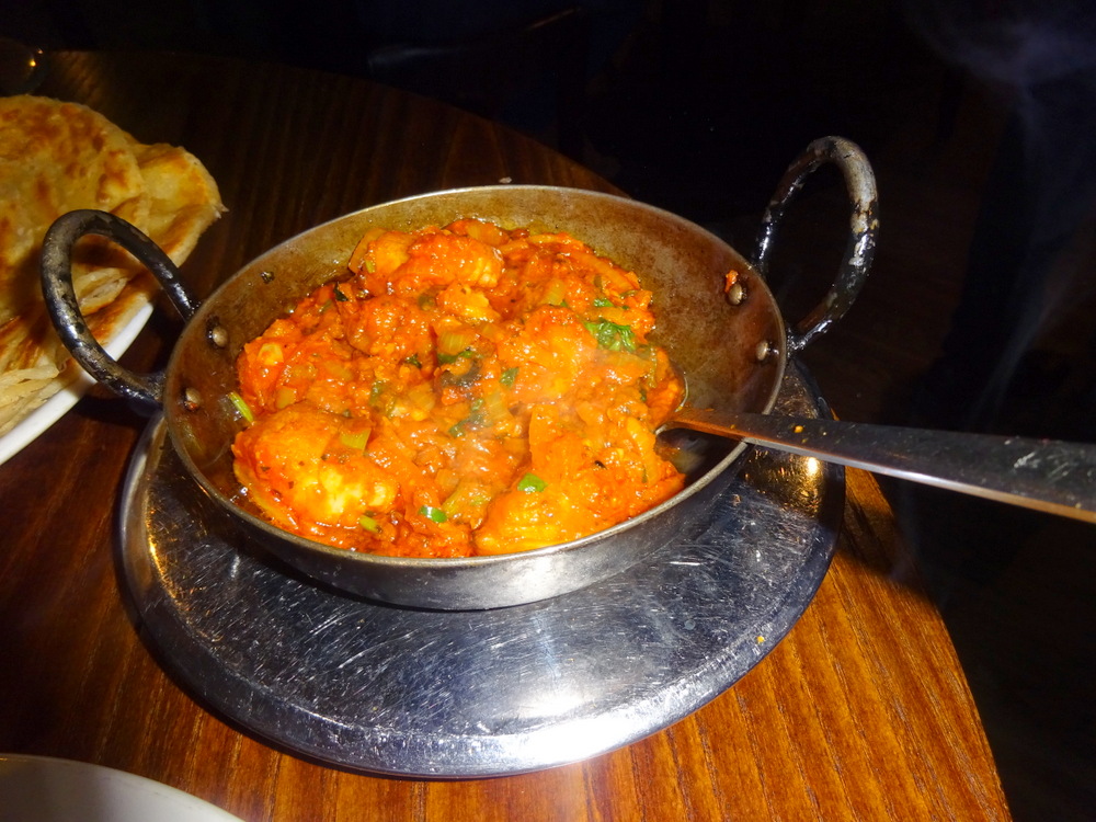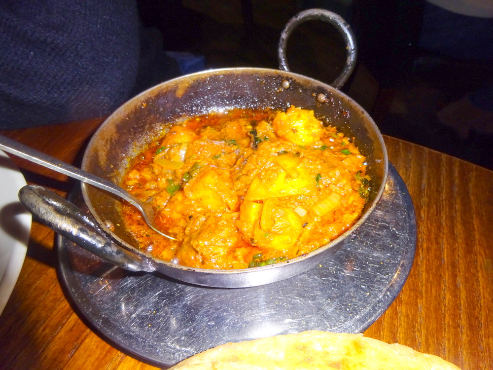 It is difficult to tell the Dishes apart in the photos, same Masala. I had asked at the point of ordering that no Capsicums should appear. I wondered if any might have sneaked in otherwise. If the plate and the Paratha were – hot, the Fish Handi was – burny hot, delightful. Someone should tell Zest (Edinburgh).