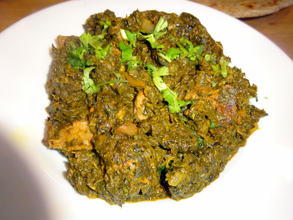 There are two types of Methi Gosht: my preferred version is a Masala with Methi, the possibly more authentic version is what was served today – a mass of Herbs – which for me is not really a Masala. I know Yadgar (Glasgow) which is where I probably last had this, use five different Herbs to create their – Mash: Methi, Palak, Mustard Leaves, Curry Leaves(?) and ?. This Kebab Mahal Methi Gosht is essentially identical.