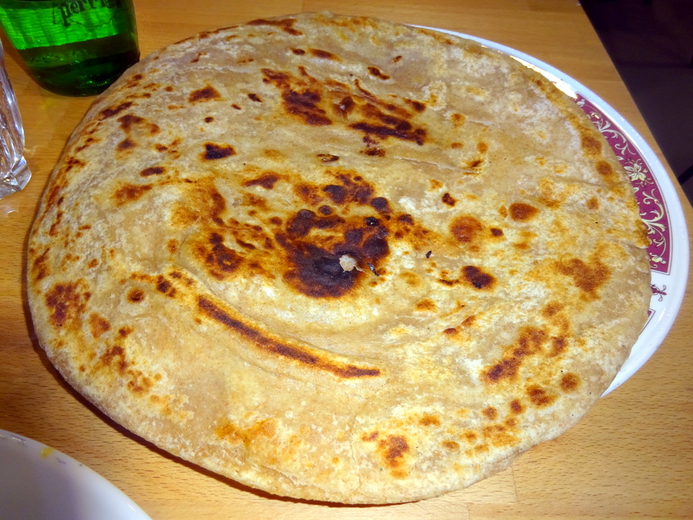 Methi Ghoust (£7.35) was recommended by Mr. Methi Freak. A Paratha (£2.15) would accompany. Two more staff arrived, one disappeared into the kitchen, the second took over serving duties. Meanwhile the phone was ringing oft, orders noted. A Chap was ordering food to eat in and take away. This was his first day in Edinburgh in two years he told me, and anyone else who would listen. The food he didn’t eat-in was packed and taken away with his other order. He was a happy chap.