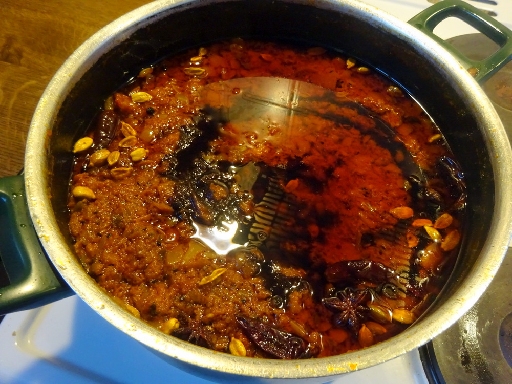 British Indian Restaurants (BIR) have brought us up to beware of the – Vindaloo – whilst – Korma – is for the feeble. Curry-Heute has challenged this since its inception, Spicy Korma has been served at Hector’s House. In the last year, since visiting Madeira, Hector has been experimenting with Vindaloo served in its original form, with Pork. The Recipe is presented here, plus a variant. Tonight’s Curry was closer to the latter with Star Anise and Smoked Red Chillies featuring.