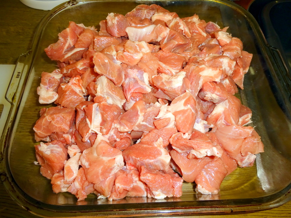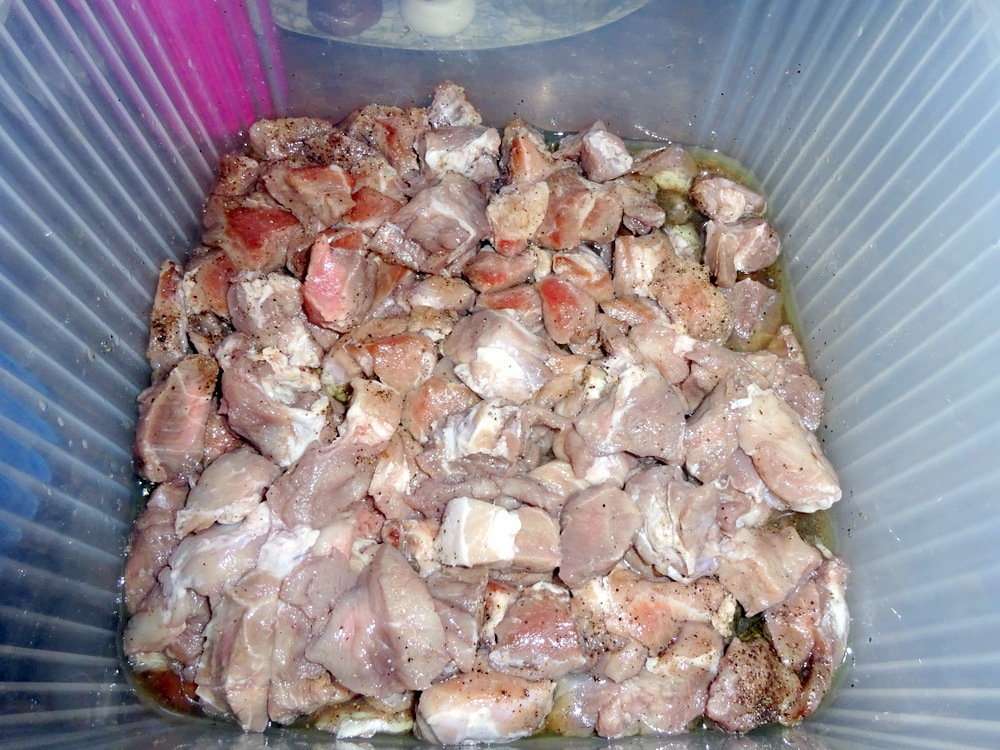 Meanwhile the Pork was marinaded overnight in Red Wine Vinegar, Vegetable Oil and Pepper, the – Vin.