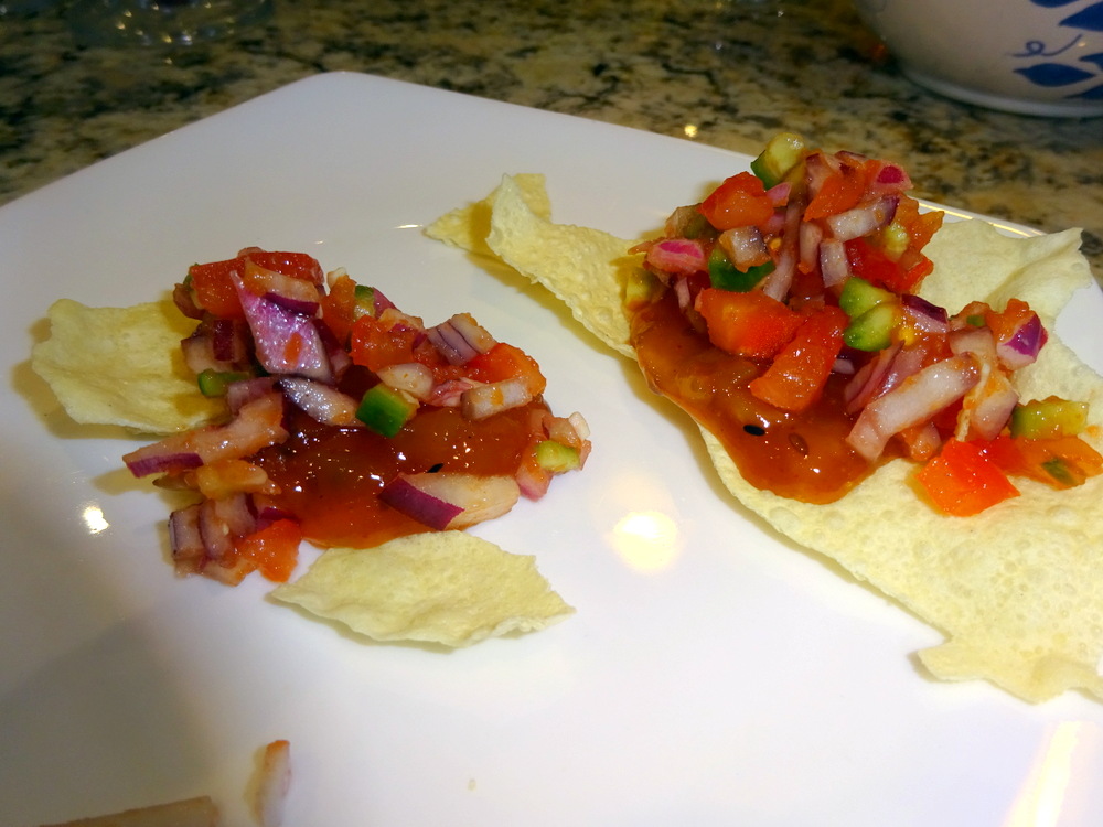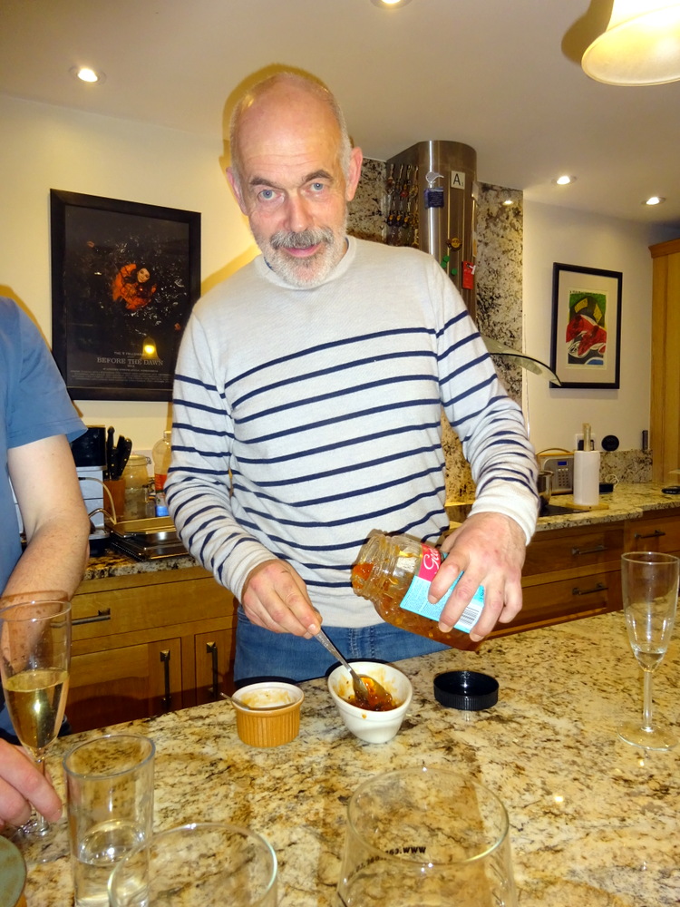 With everyone assembled, Poppadoms, Chutney and a Tomato-Cucumber creation prepared by Dr. Alasdair were tucked into. Cumin Seeds, Mmmm. I assumed they were from – the creation – then it I heard the ingredients of the most impressive Mango Chutney being read aloud: Cumin and Fenugreek.
