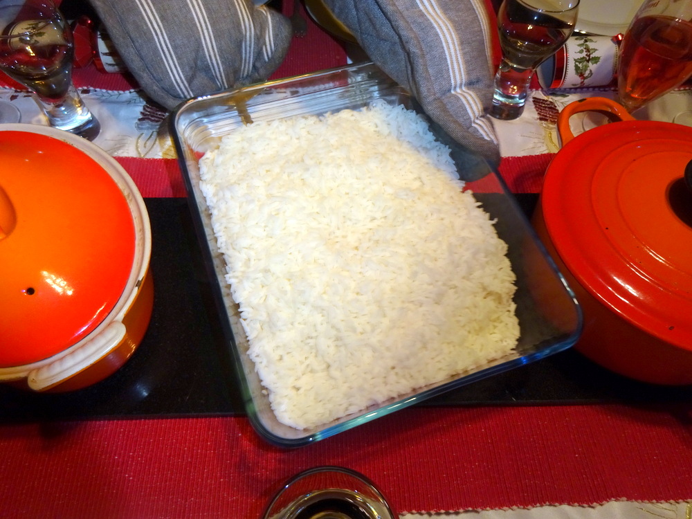 We progressed to the dining room, the Curry, Rice, Chapattis and Naan were assembled. There is some skill in bread making amongst the people of Carnoustie. Mags brought the Basmati, all was set. This is what I consider to be a portion of Rice, every grain would be eaten.