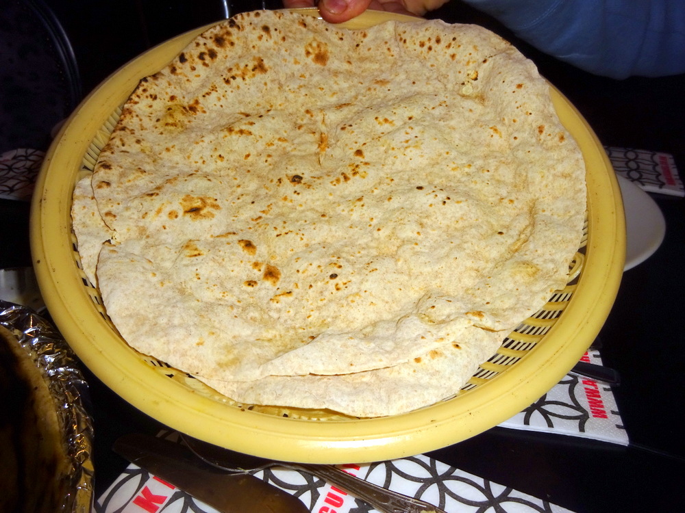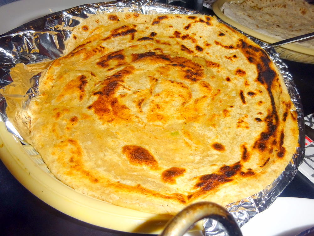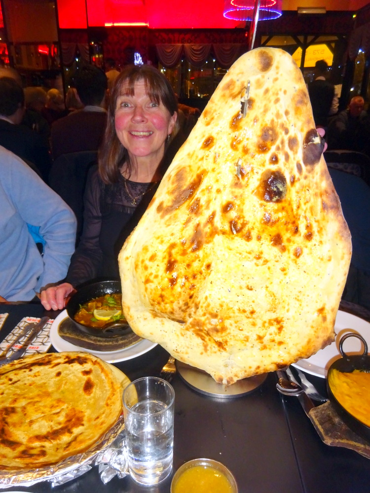 The Paratha was up to the expected standard – Large, Layered, Flaky and – Whole! I would eat more than half, Peter took his promised piece. The Chapattis were for Marg and Rory, they probably had Naan also. Ours didn’t fall off, it wasn’t finished but we did it – Justice!