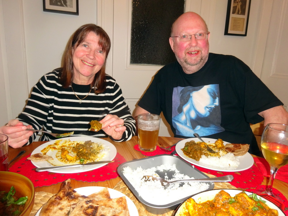 Around the turn of the century when Hector did the Curry Course at Anniesland College, the creations were taken to school next day for reheating. Steve was always on hand to share the creations. Recipes were shared also, a whole lotta sharing going on. Hector has cooked Curry oft for Steve, tonight was only the second time that Steve has cooked Curry for Hector and Marg. Louise reports that his Curry always impresses.