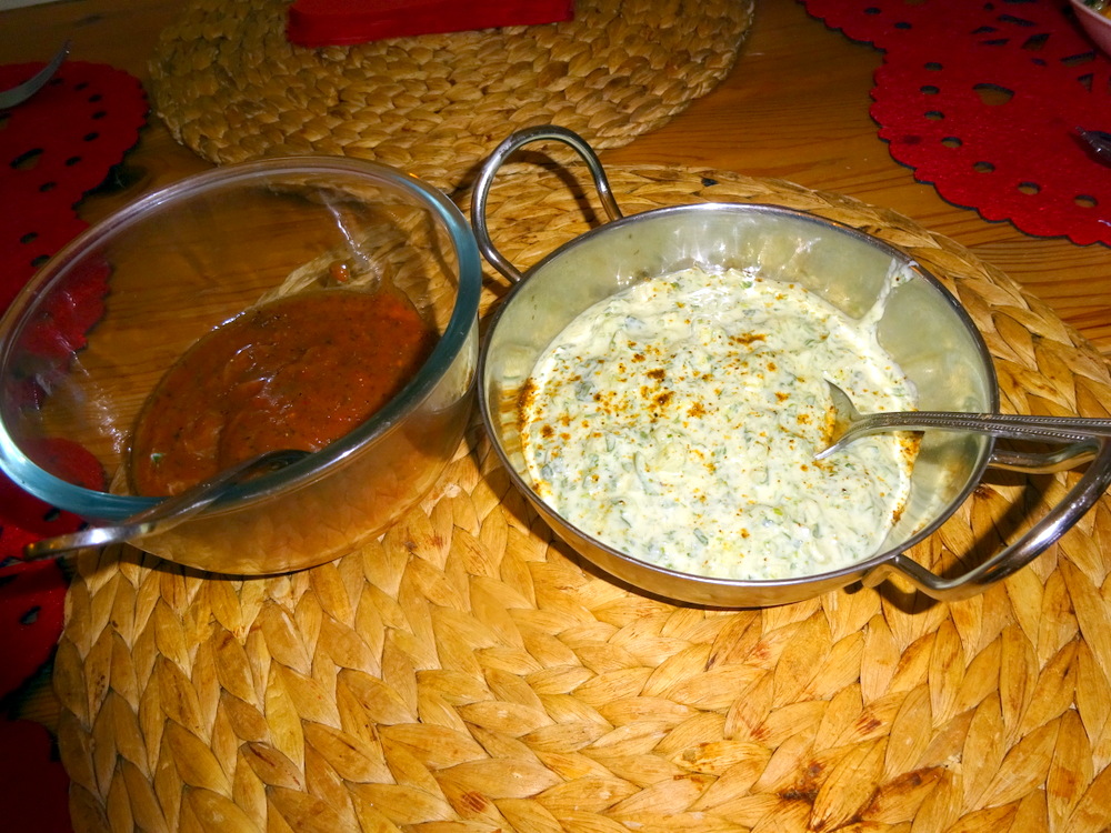 Two Dips accompanied, one a Raita variant, the other a Tomato-based Sauce. These successfully tempered the Chilli, a great combination which worked well. Otherwise, I suspect the Ladies may well have complained, as if.