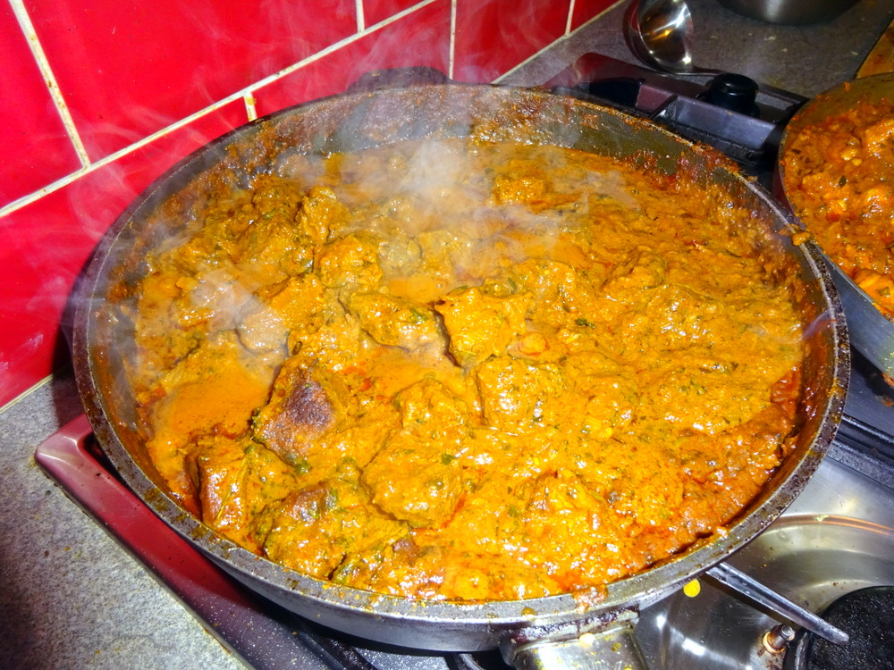 Now we’re talking. The Masala was seductively Dark and clearly Herb rich, exactly how I seek my Curry: Masala with Herbs, not the reverse. There was no collection of surplus Oil. The Flavour was very – Earthy – with the welcomed – Methi Blast.