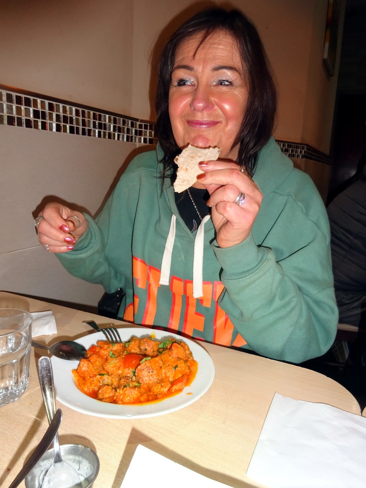 When Hector eats, his conversation is minimal. Others chatted, concentration. When I stopped I was surprised to see that Tracy had eaten the vast majority of her Curry, I don’t know how she managed this. There was just enough left over to make packing it justifiable.
