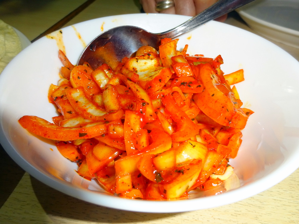 Tracy appeared to warm to the Fish and did her best to secure the remaining morsels, and the Spiced Onions… Alan reminded her that there was much more to come. As Shkoor passed on his way back from serving others in the very full Restaurant, I asked if that was all. We could contentedly leave now.