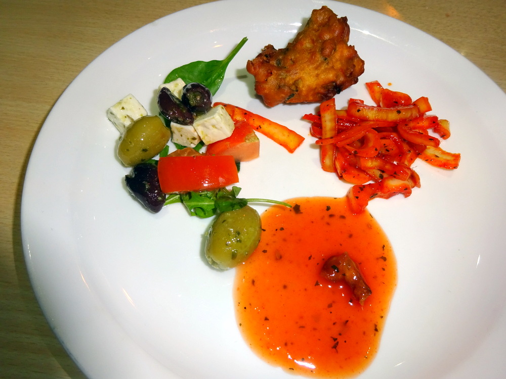 When the Salad arrived it was time for Hector to start. Green and Black Olives were accompanied by Paneer, these sat on a bed of Rocket and Spinach Leaves. Alan is not into Olives, Marg admitted that pre-Hector, she wasn’t either. More for the rest of us. The Rocket was left, who likes Rocket?