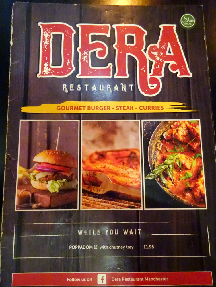 Dera (433 Cheetham Hill Rd, Manchester, M8 OPF) takes a bit of effort to get to unless one throws money at a Taxi, even a single on Bus 135 from Piccadilly costs £3.00. Today I decided to walk from the Northern Quarter up Cheetham Hill to Dera. Apart from needing the exercise, I wanted to establish just how many more Curry Houses there were along the way. I have spotted some previously, today I recorded a cluster of four some five to ten minutes from Victoria Station, so not so far out then.