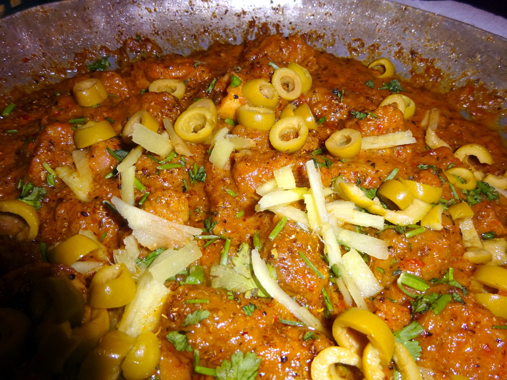 Sliced Green Olives were as prominent as the sheer size of the serving. Ginger Strips were there too. I counted more than twenty decent sized pieces of Meat with only two bones, both Sucky Bones. There was surprisingly little Oil visible, perhaps it had skilfully been dabbed off. The Masala looked so inviting, this Masala oozed Quality.