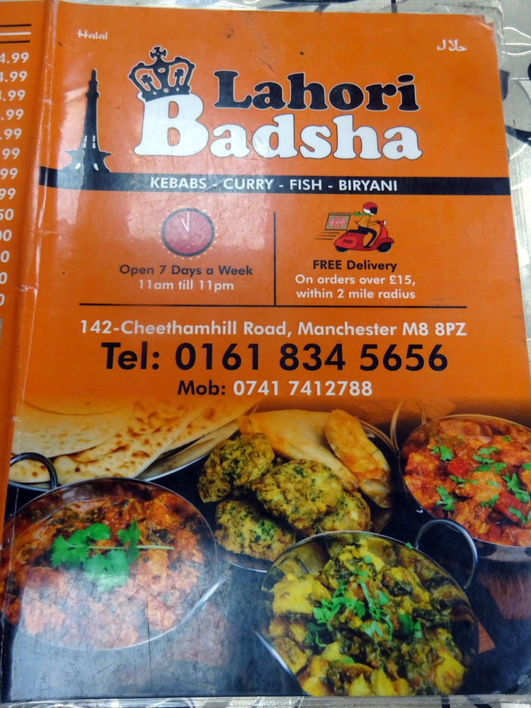 there’s no rush. Meanwhile, Lahori Badsha (140 Cheetham Hill Rd, Manchester, England M8 8PZ) was the first venue encountered yesterday, the young Chap behind the counter was welcoming, I said I would be back.