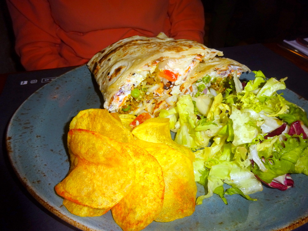 What a plateful, the halved Naan was stuffed with Keema, Cheese and Coleslaw, the accompanying Salad and Crisps made this very much a meal.