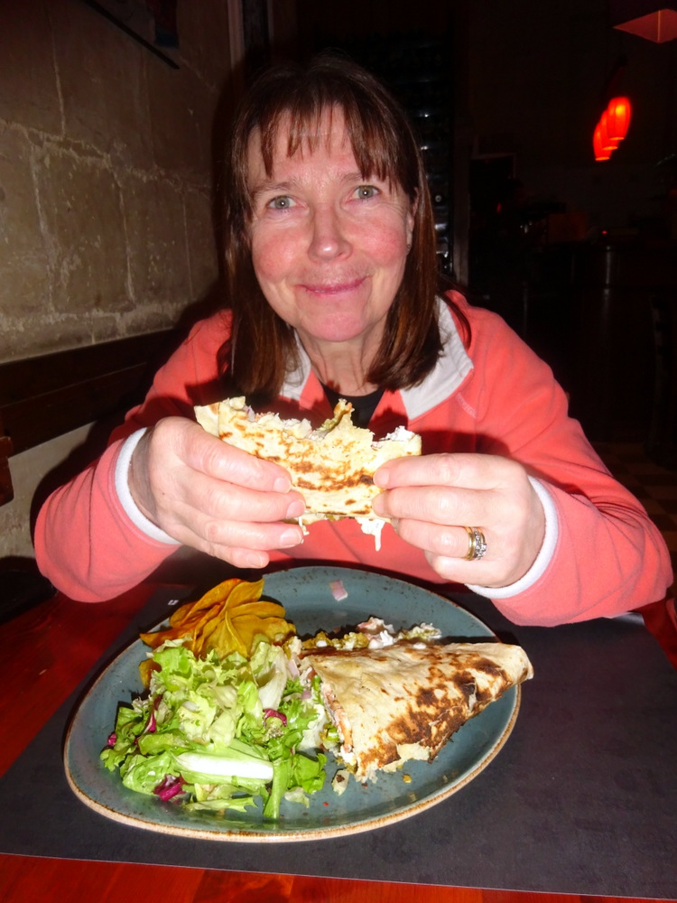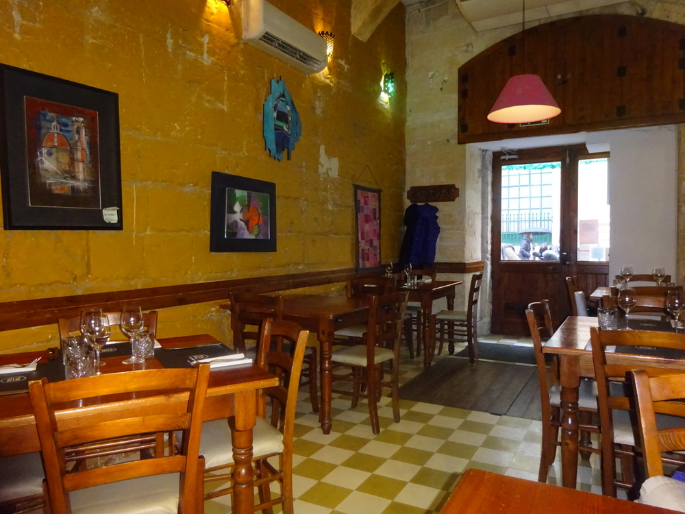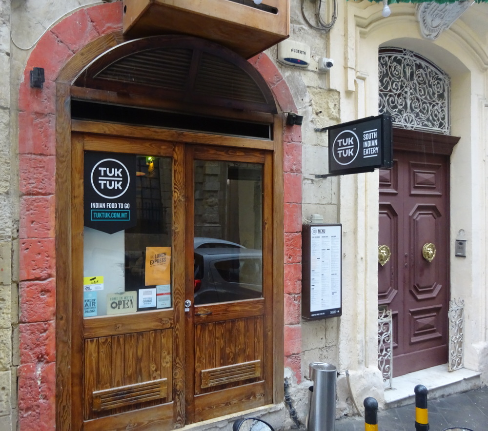 Marg and Hector were on the 11.30 ferry from Sliema across to Valletta, five minutes on a boat being quite enough for Hector. As predicted, the heavens opened, we took refuge at Tuk Tuk – South Indian Food (174 Merchants St, Valletta Malta) just after their noon opening time.