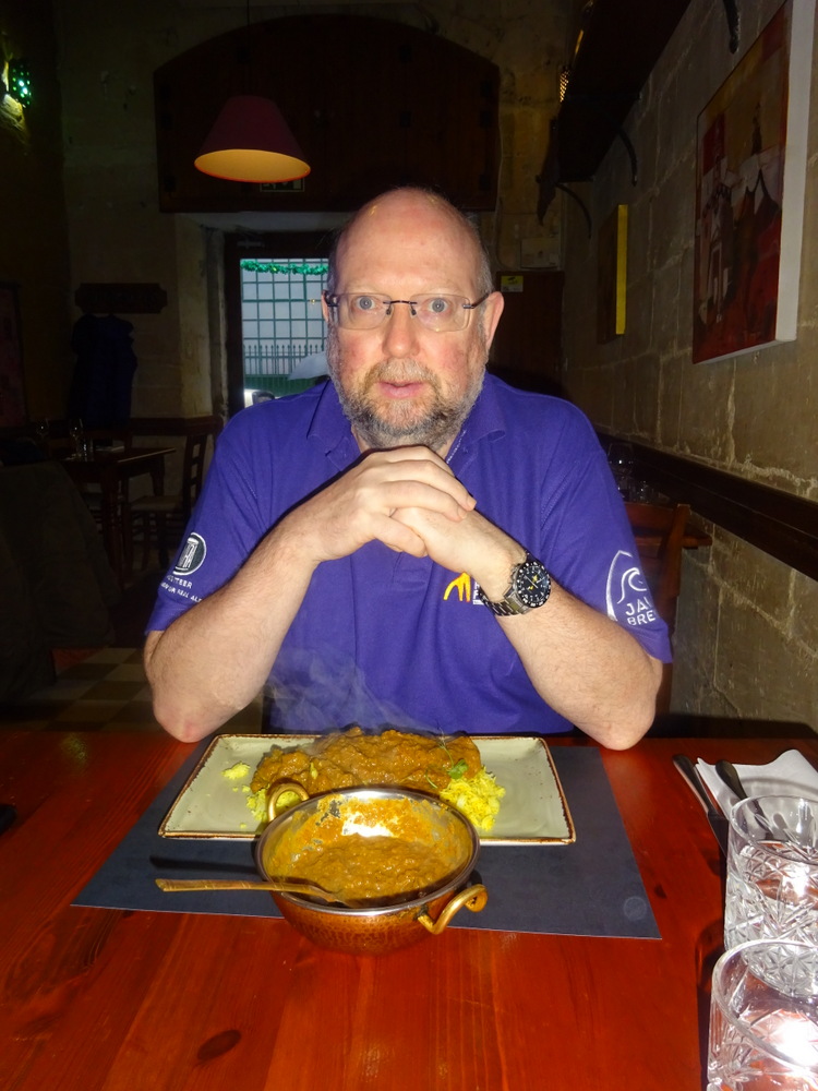 It is – The February Week – for those still involved in the World of Education, that’ll be Marg and Louise. Six of us are in Malta, reunited for the first time since Madeira 2017. There is a lot of Curry to be had in Malta, unfortunately for Hector, Day 3 provided the first opperchancity to go exploring, the famous Maltese Rabbit Stew and Mediterranean Seafood having been the distractions until Curry-Heute.
